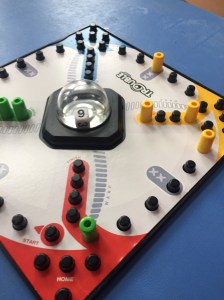 Trouble: This game also works well to pass the time without requiring complex setup or complicated rules. Two players can each choose one color. Use game variations like starting a piece on the board when someone rolls a one or a six, and decide whether players get to go again if they roll a certain number. Want even more fun? Decide whether players can knock themselves out, if you’ll use warp spaces, or let players have more than one color and see where the fun takes you.