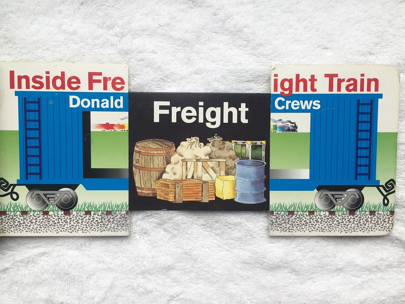Freight Train Board Book: This board book makes a great companion for any train aficionado. Each study page features a different type of train car in a bright rainbow shade. For extra fun, try the board book with sliding pages, which reveal the cargo hidden inside.