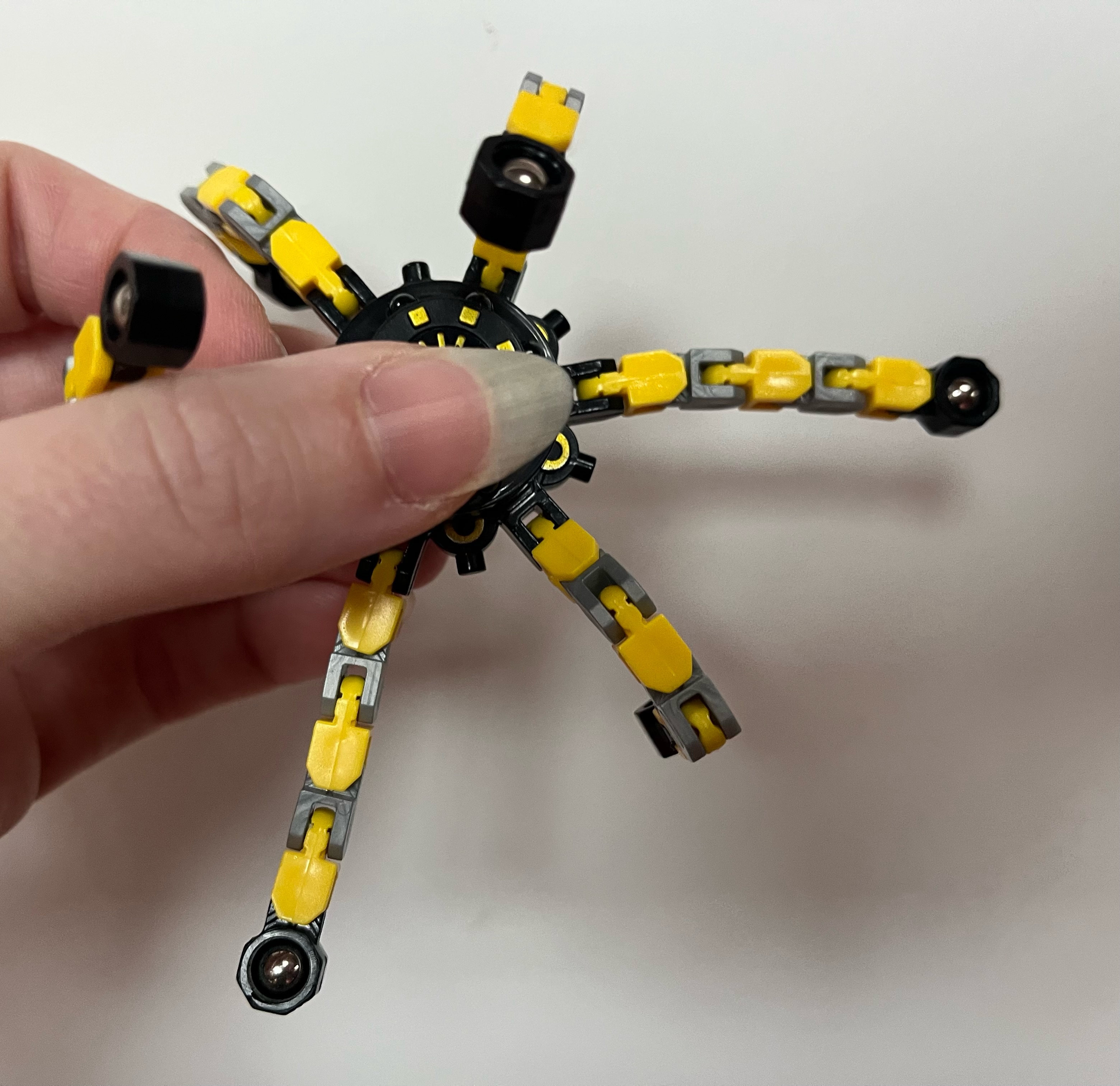 This tiny toy measures about an inch (2.5 cm) across in its smallest form. With six linked arms that radiate from the center, kids can shape it a multitude of ways. A central bearing lets the shapes spin freely. Kids love manipulating the arms into different shapes. It keeps their hands occupied, and requires zero batteries. Best of all, it makes minimal noise, so kids can play without irritating others.